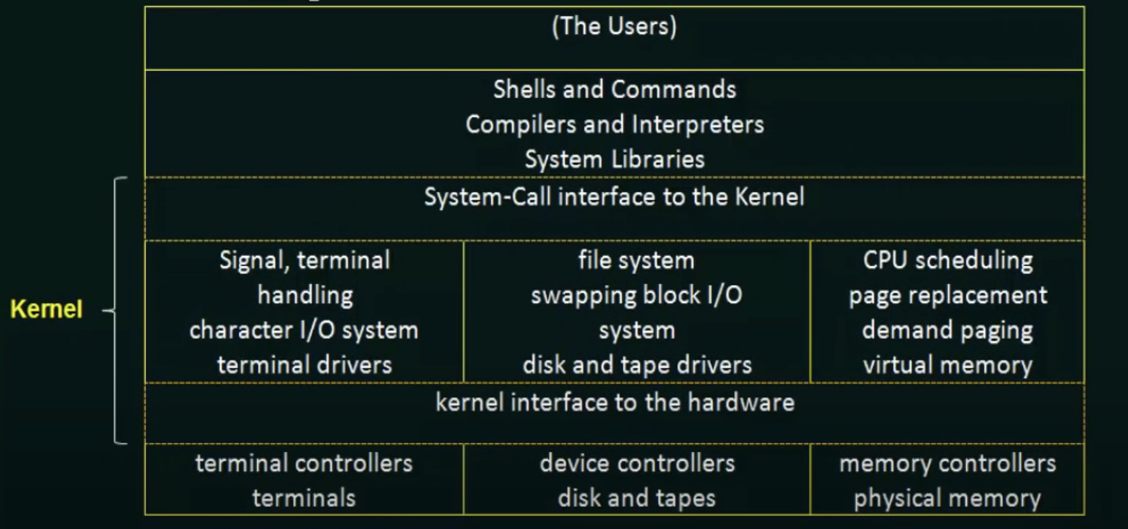 - Everything above Hardware and below System-Call Interface is called Kernel